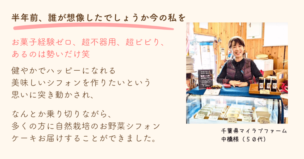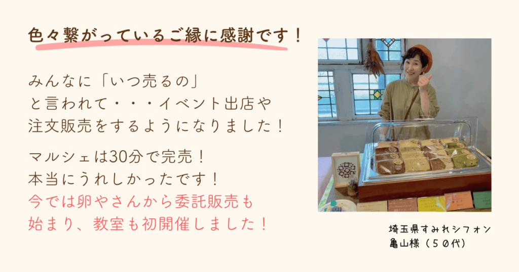 - 大好きなシフォン作りで収入を得ることができるようになる!